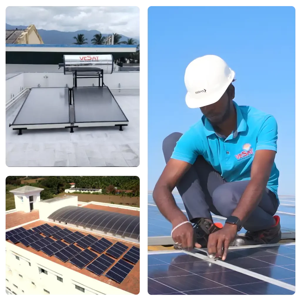 VESAT Renewables Pvt. Ltd. is an ISO 9001:2015 certified solar leader with 35+ years of expertise in delivering end-to-end solar solutions. We provide government-approved, affordable solar systems for water heating, lighting, drying, cooking and solar power plants across India.