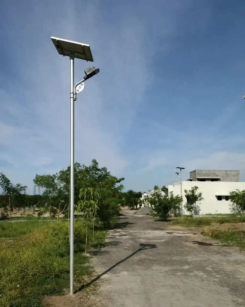 VESAT Solar Photovoltaic Street Lighting Systems are raised outdoor lighting units powered by solar panels mounted on the pole or integrated into the structure. These panels convert sunlight into electricity during the day, store it in rechargeable batteries, and power LED lights automatically at night.